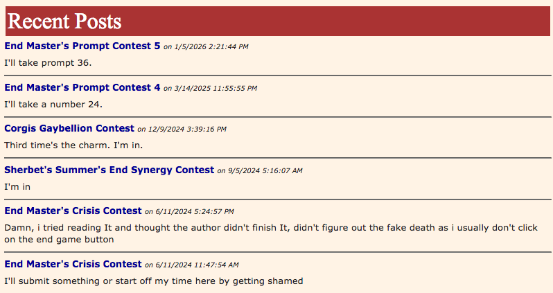Endmaster's Map to (Im)Mature Story WritingRecent Posts