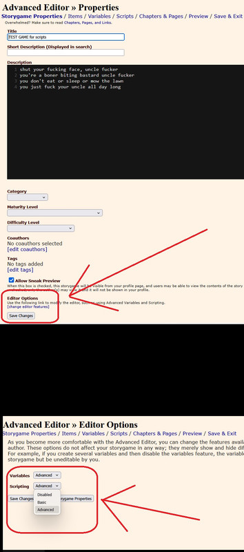 Okay the first thing I have done is changed your editor and variable settings to advanced. Now you have access to scripting. EDIT: I'm taking this to PM because I don't think everyone wants the forums cluttered.