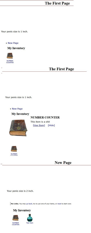 After you do that, you can do as I have done in the previous posts: create a variable, create an item, and edit the item's script to change the variable. Then, to display the variable's number, you would use on-page scripting.
