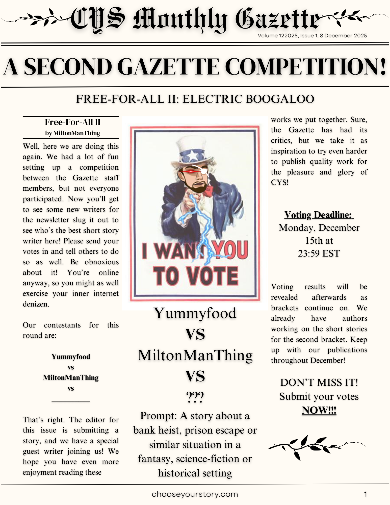 With the publishing of this issue, the CYS Monthly Gazette has now produced news for the whole year of 2025. In fact, out first anniversary is coming up in just two days! Thank you to everyone who has supported this newsletter by reading, commenting and contributing! It's a joy to do this all for you guys, and we hope to do it continuing into the far future.
